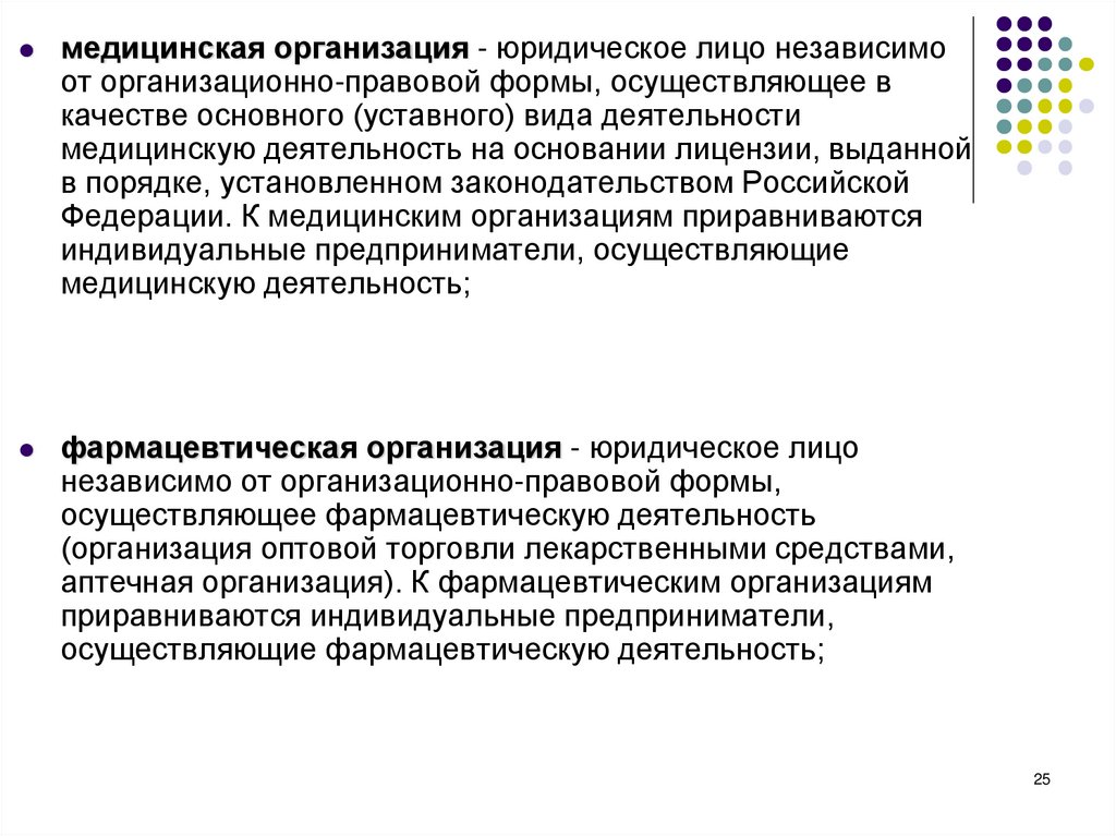 медицинская организация - юридическое лицо независимоот организационно-правовой формы, осуществляющее в