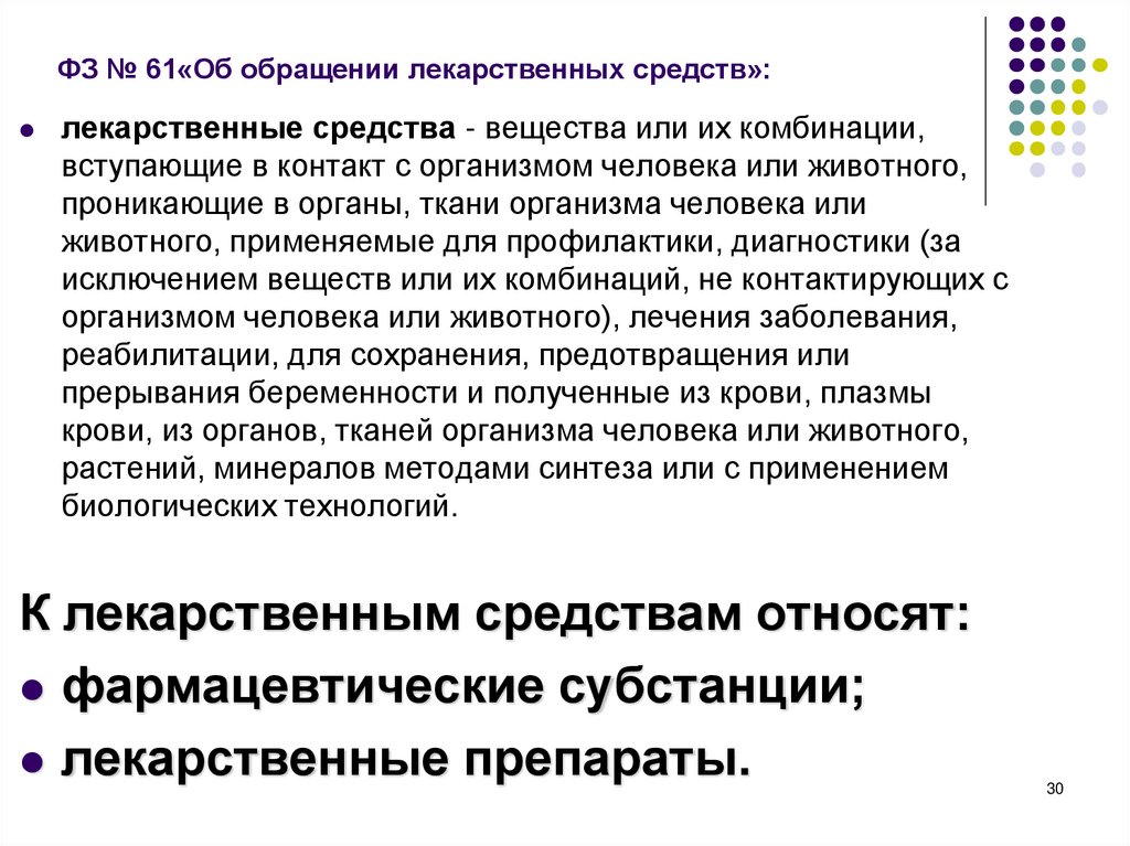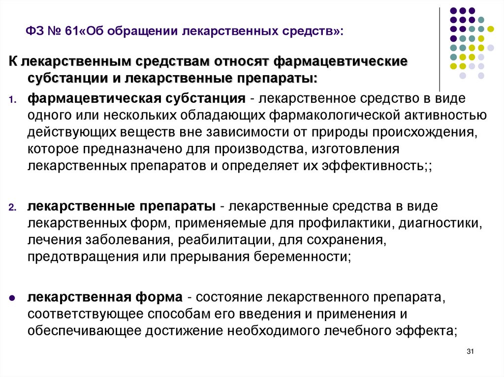ФЗ № 61«Об обращении лекарственных средств»:К лекарственным средствам относят фармацевтические