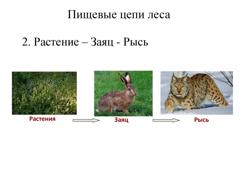 Пищевые цепи леса2. Растение – Заяц - Рысь
