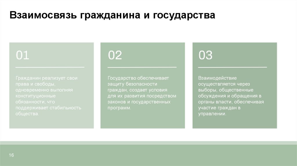 Взаимосвязь гражданина и государстваГражданин реализует свои