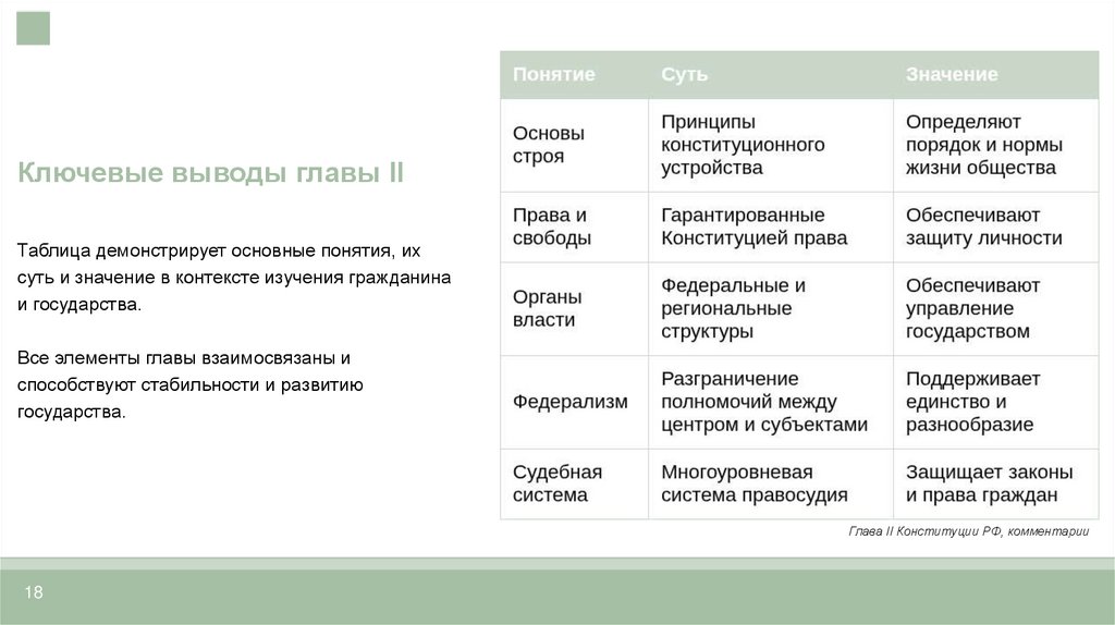 Ключевые выводы главы IIТаблица демонстрирует основные понятия, их