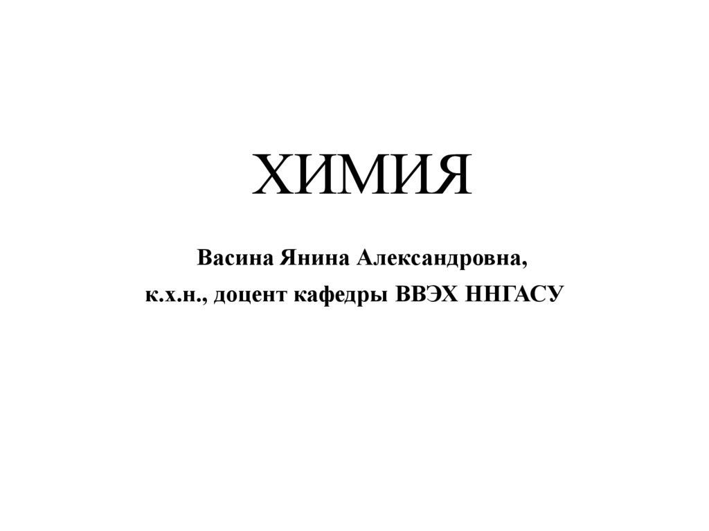 1. ХИМИЯ Васина Янина Александровна, к.х.н., доцент кафедры ВВЭХ ННГАСУ