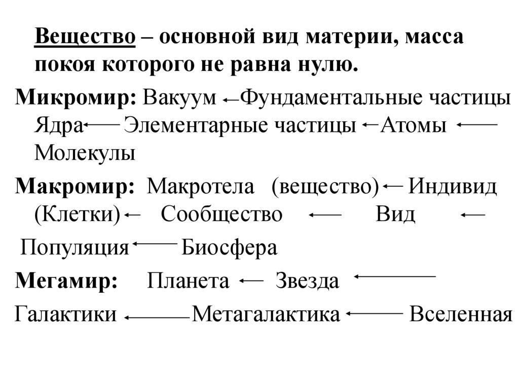 Основные формы существования материи