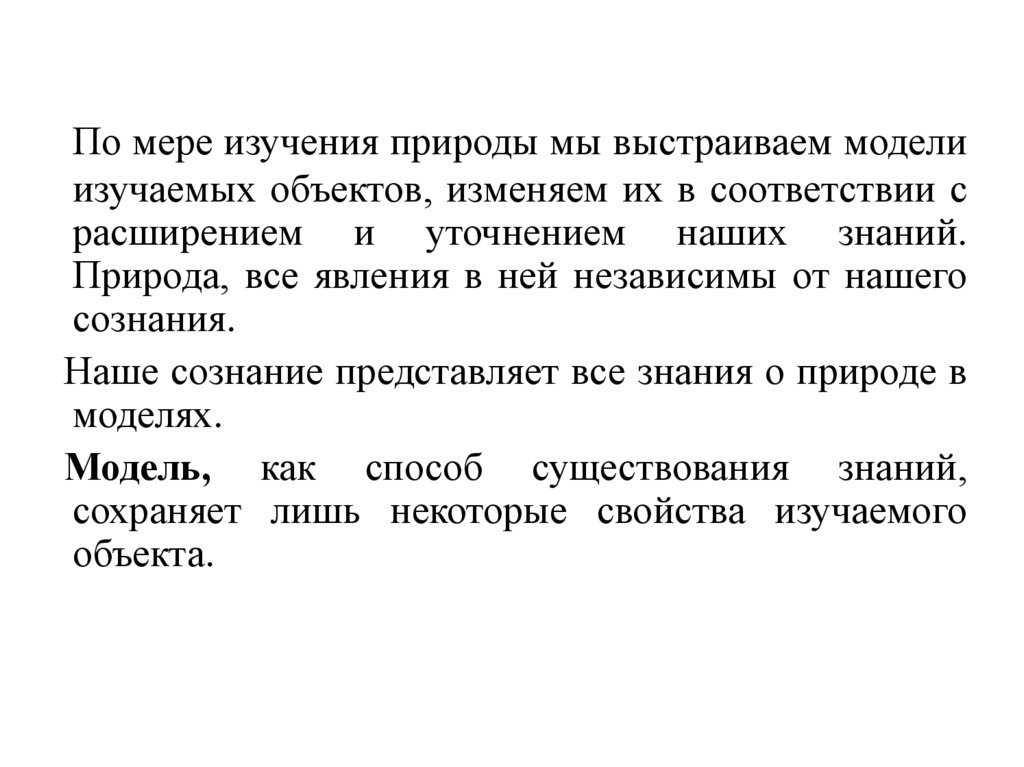 По мере изучения природы мы выстраиваем моделиизучаемых объектов, изменяем их в соответствии с
