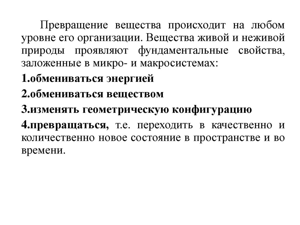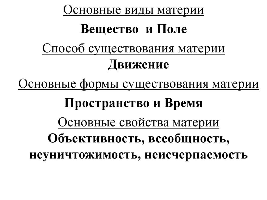 Основные свойства материи