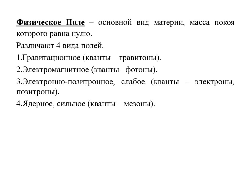 Основные виды материиВещество и Поле