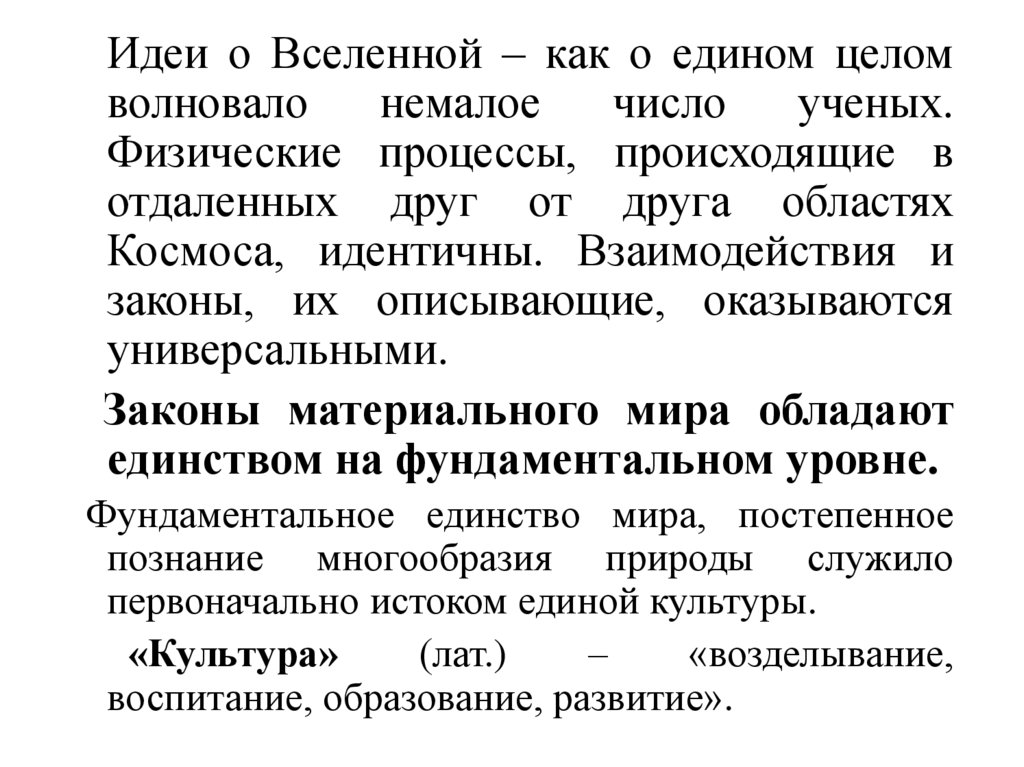 Идеи о Вселенной – как о едином целомволновало