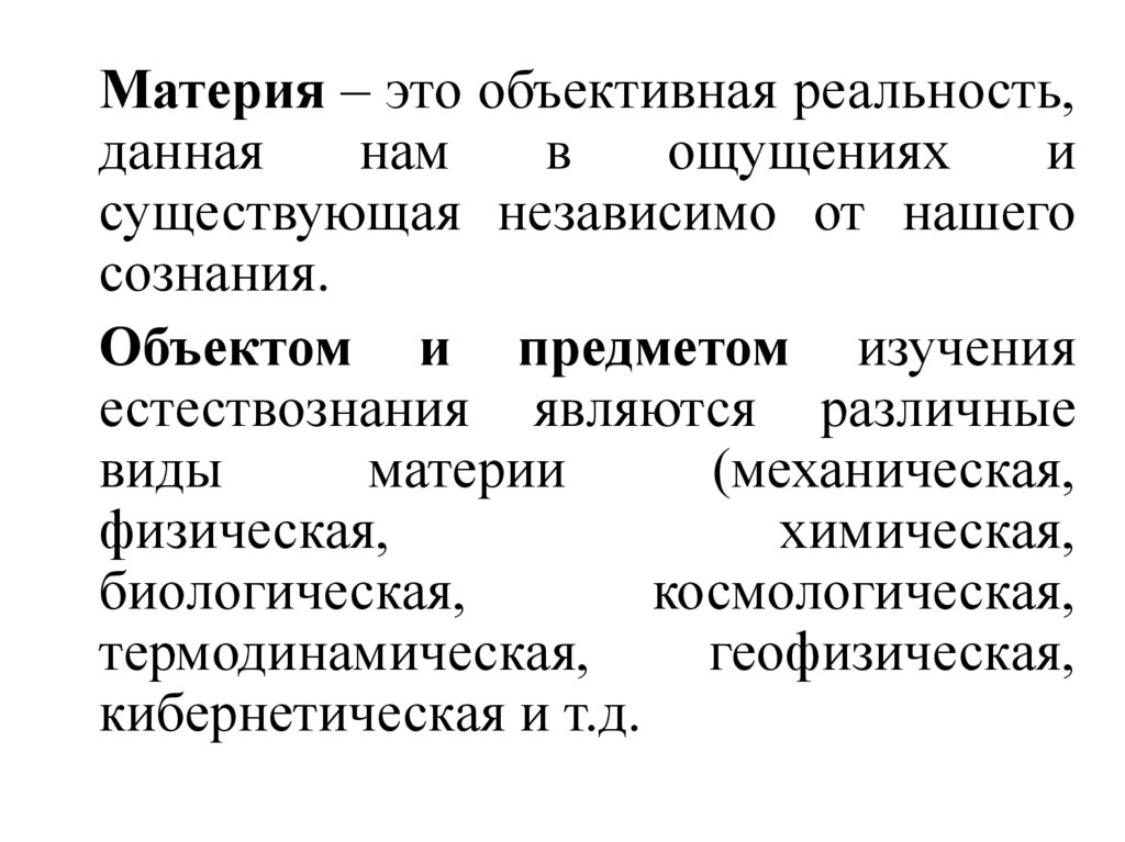 Материя – это объективная реальность,данная