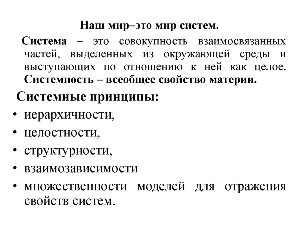 Наш мир–это мир систем.Система – это совокупность взаимосвязанных
