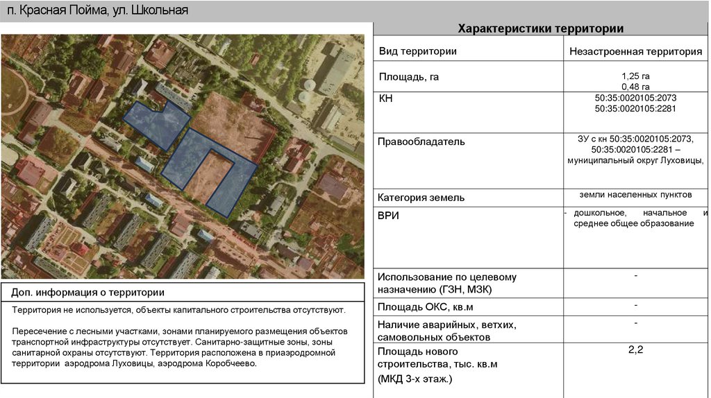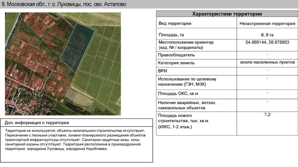 8. Московская обл., г. о. Луховицы, пос. свх. АстаповоХарактеристики территории