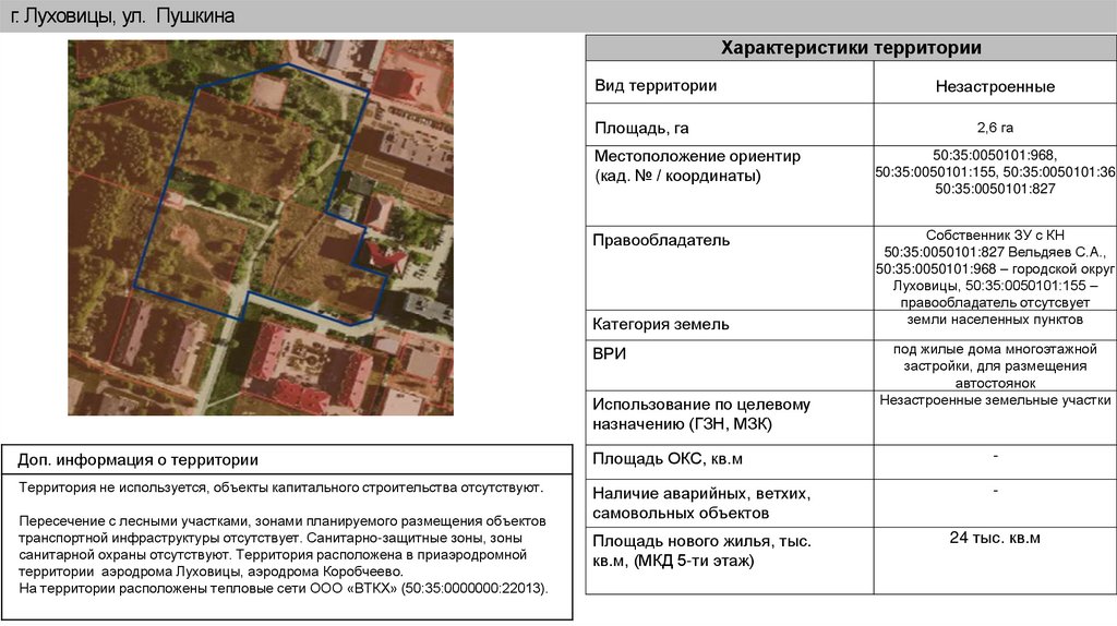 г. Луховицы, ул. ПушкинаХарактеристики территории