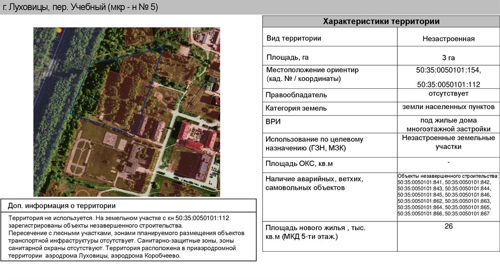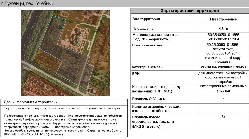 г. Луховицы, пер. Учебный (мкр - н № 5)Характеристики территории