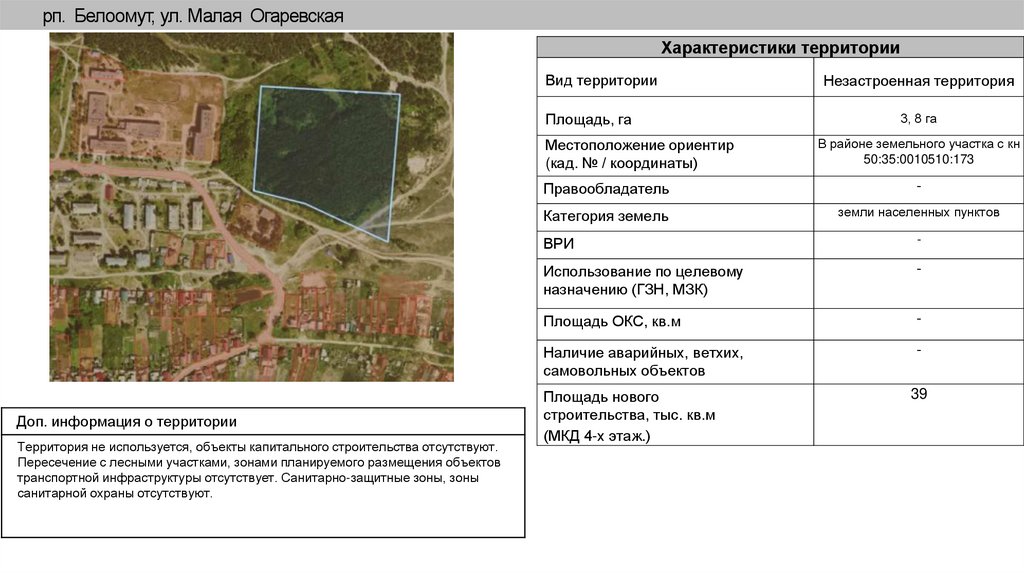рп. Белоомут, ул. Малая ОгаревскаяХарактеристики территории