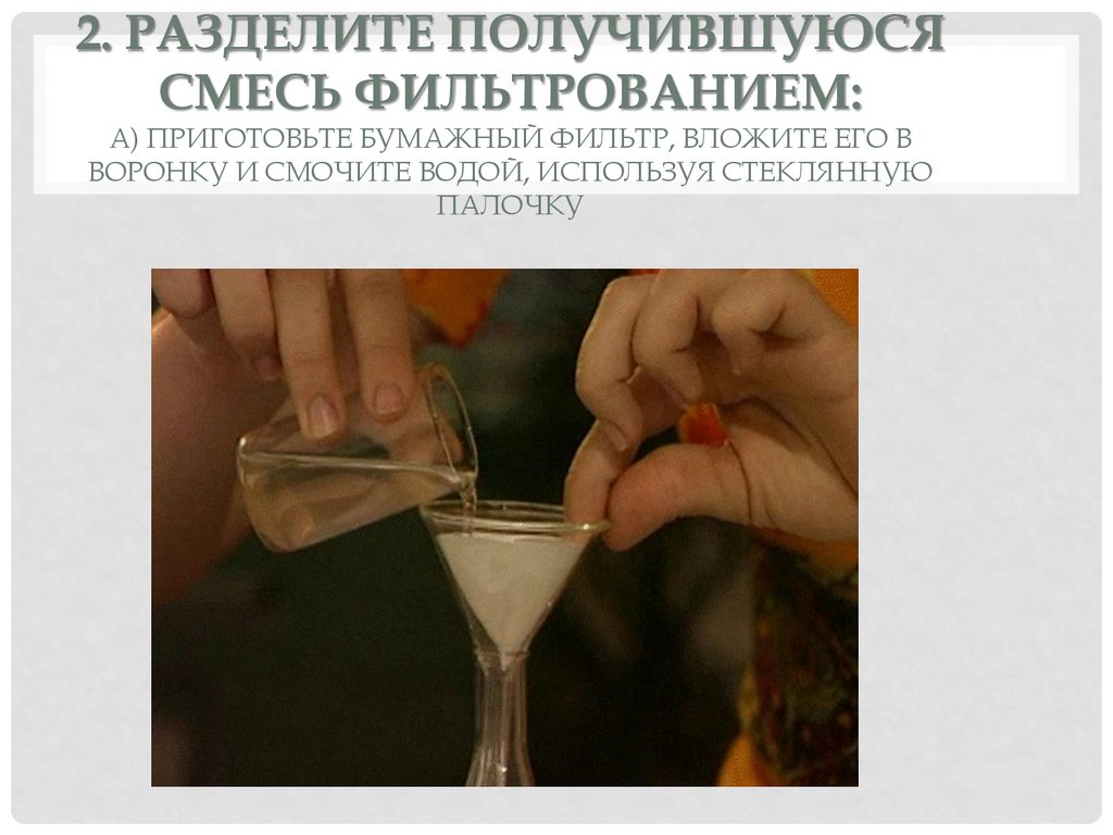 2. РАЗДЕЛИТЕ ПОЛУЧИВШУЮСЯСМЕСЬ ФИЛЬТРОВАНИЕМ: