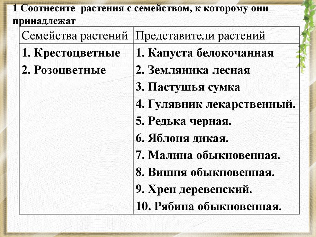 1 Соотнесите растения с семейством, к которому онипринадлежат