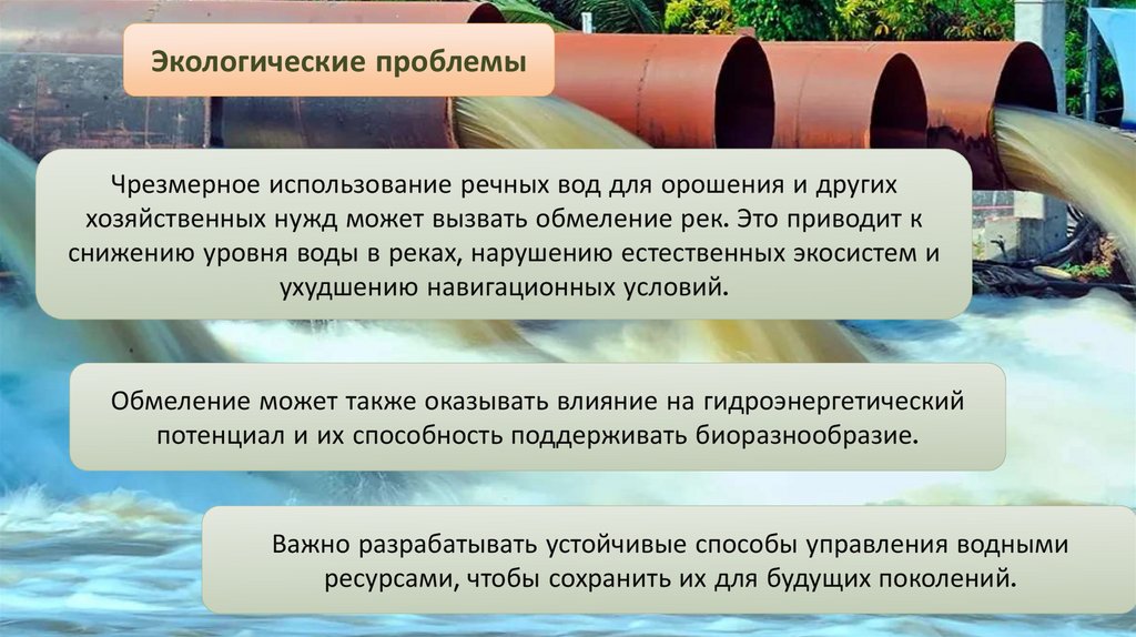 Экологические проблемыЧрезмерное использование речных вод для орошения и других
