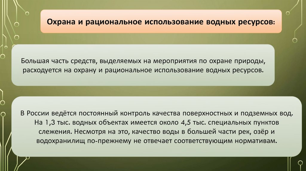 расходуется на охрану и рациональное использование водных ресурсов.