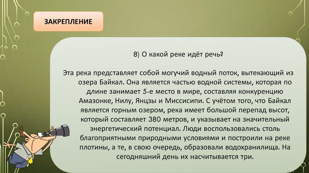 ЗАКРЕПЛЕНИЕ7) О какой реке идёт речь?