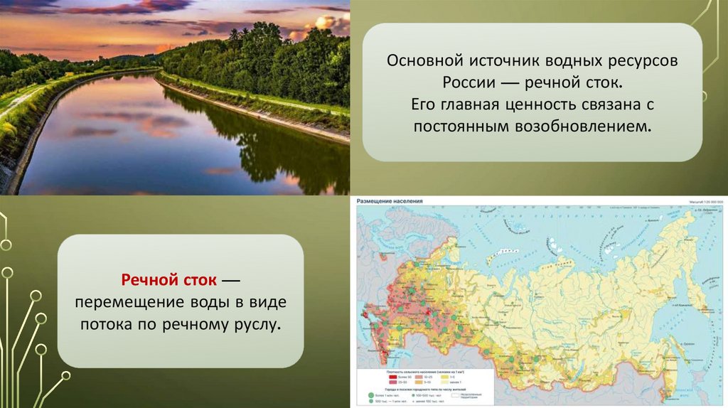 Основной источник водных ресурсовРоссии — речной сток.