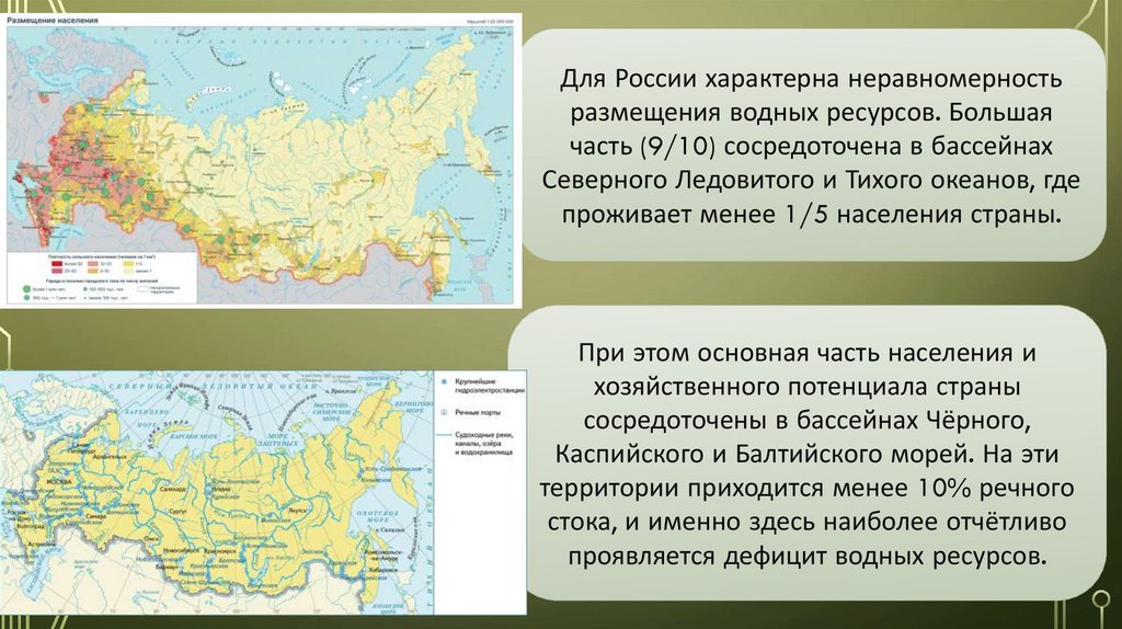Для России характерна неравномерностьразмещения водных ресурсов. Большая
