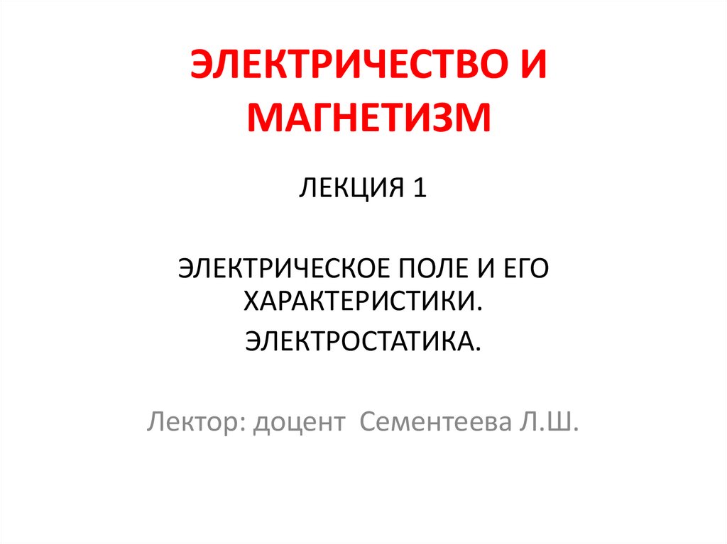 ЛЕКЦИЯ 1ЭЛЕКТРИЧЕСКОЕ ПОЛЕ И ЕГО