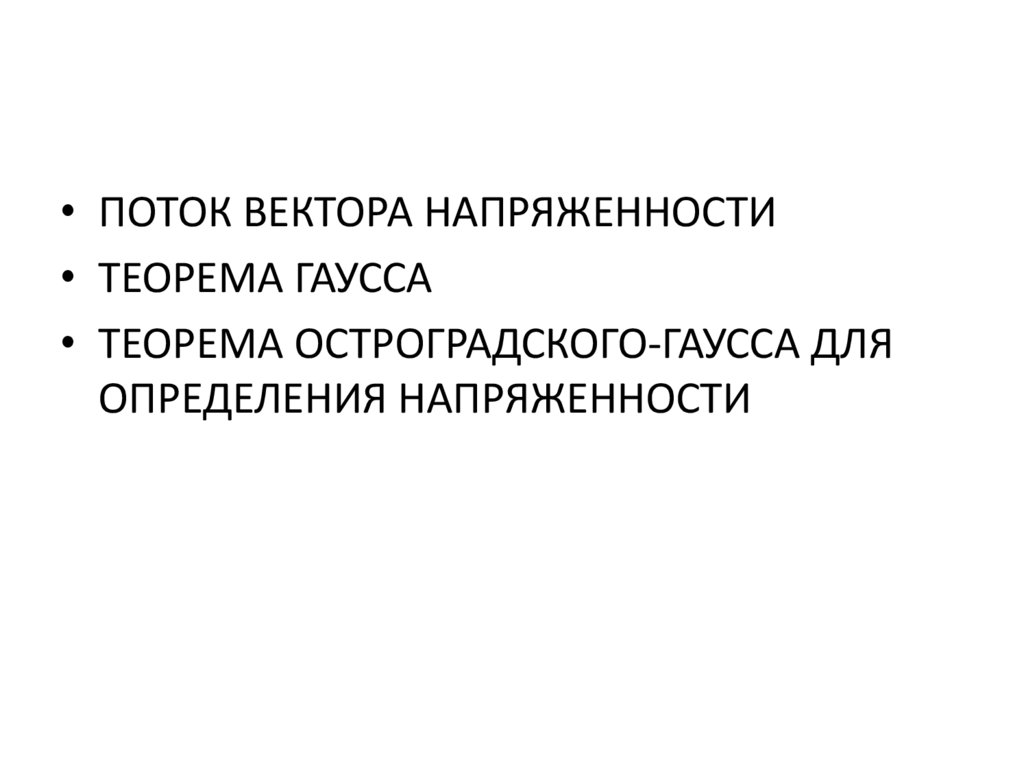• ПОТОК ВЕКТОРА НАПРЯЖЕННОСТИ• ТЕОРЕМА ГАУССА