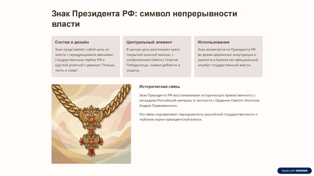 Знак Президента РФ восстанавливает историческую преемственность с