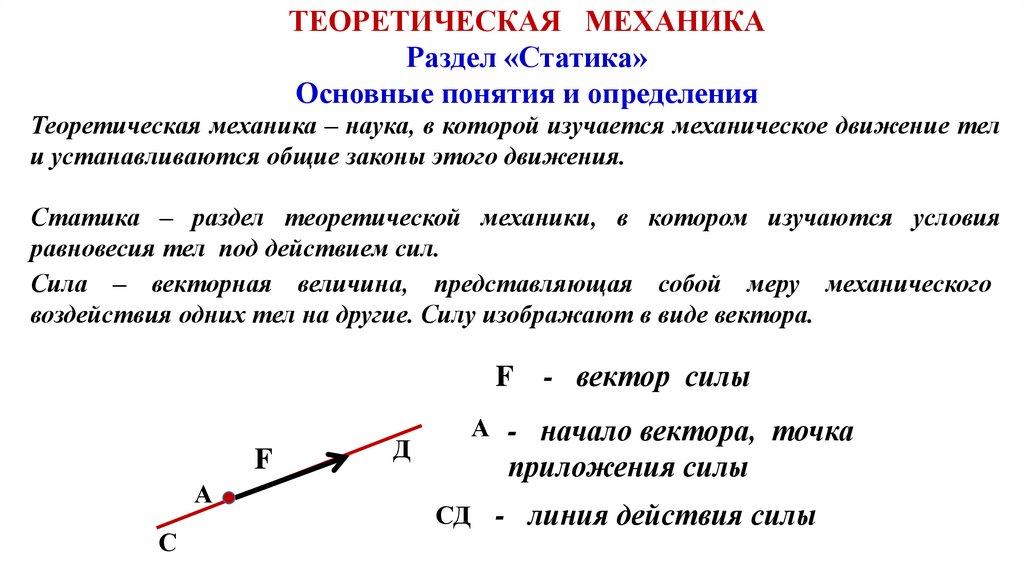 Статика – раздел теоретической механики, в котором изучаются условия