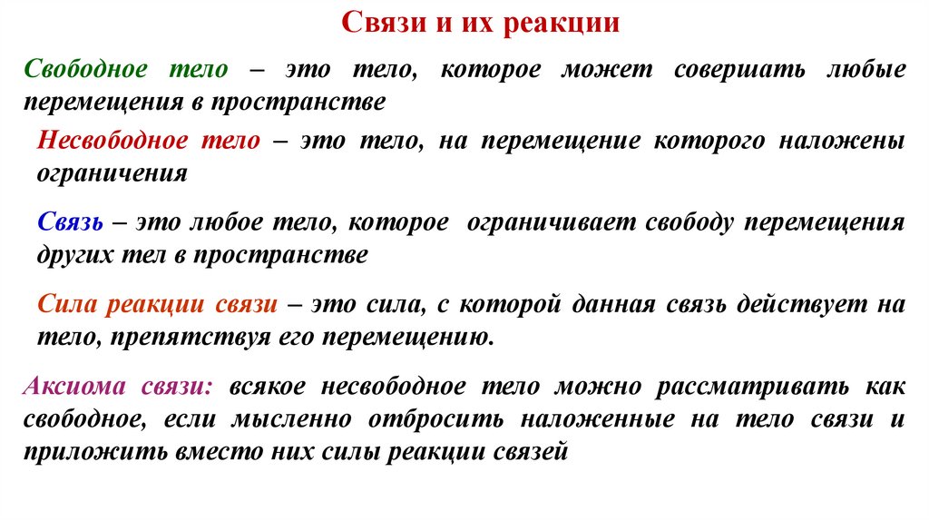 Связи и их реакцииСвободное тело – это тело, которое может совершать любые