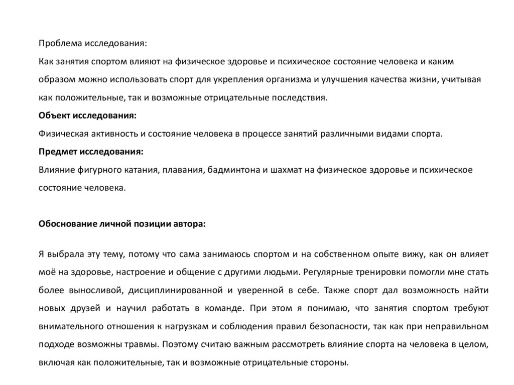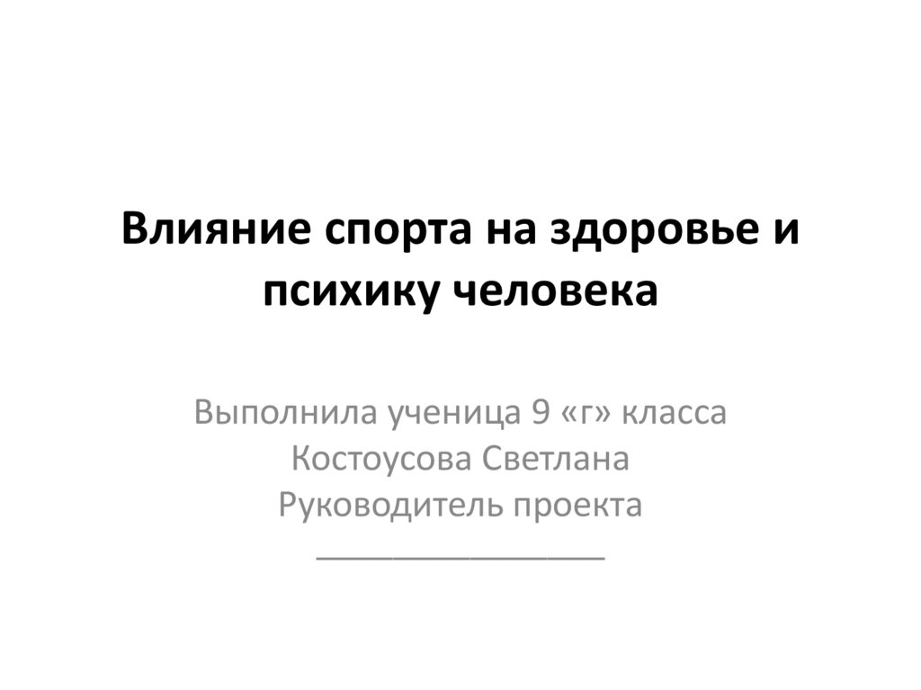 Проблема исследования:Как занятия спортом влияют на физическое здоровье и психическое состояние человека и каким
