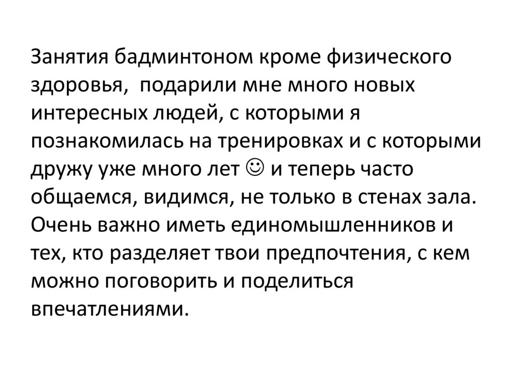 Занятия бадминтоном кроме физическогоздоровья, подарили мне много новых