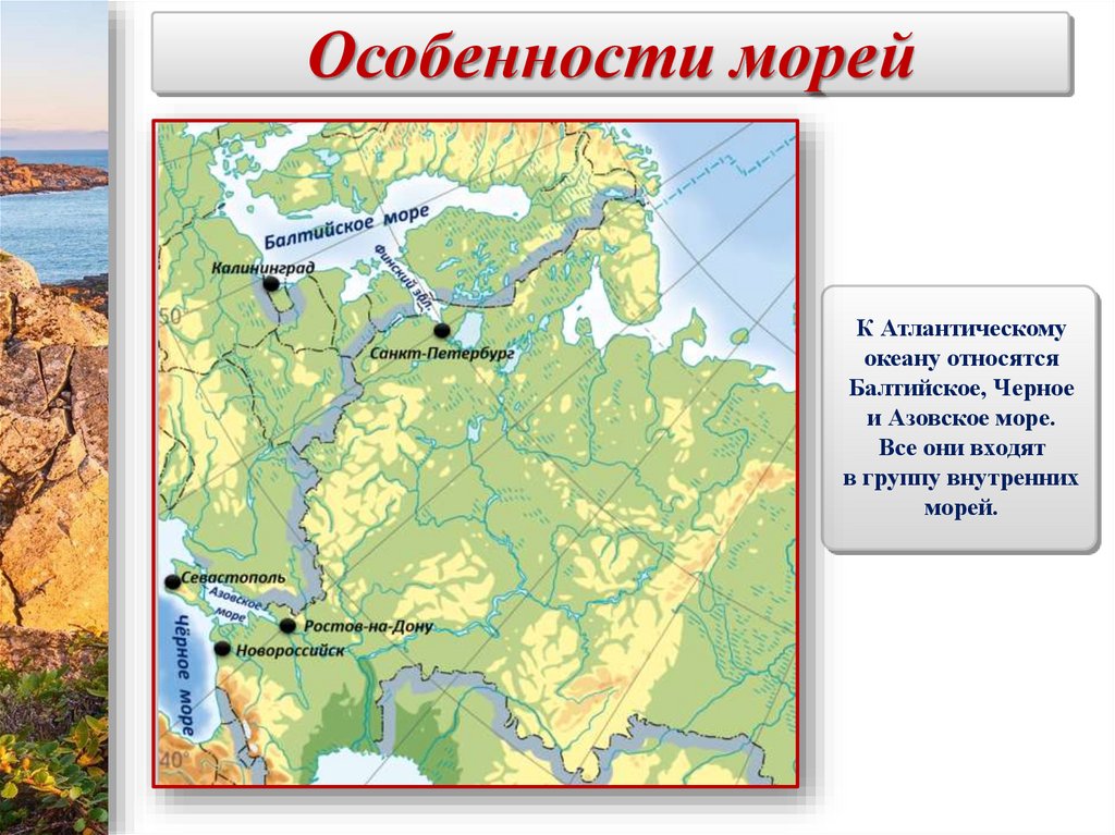 есть выход к Балтийскому, Черному и Азовскому морям,