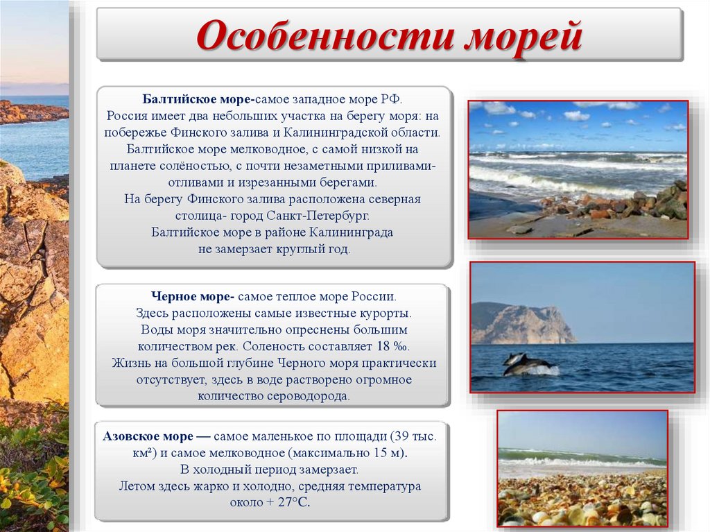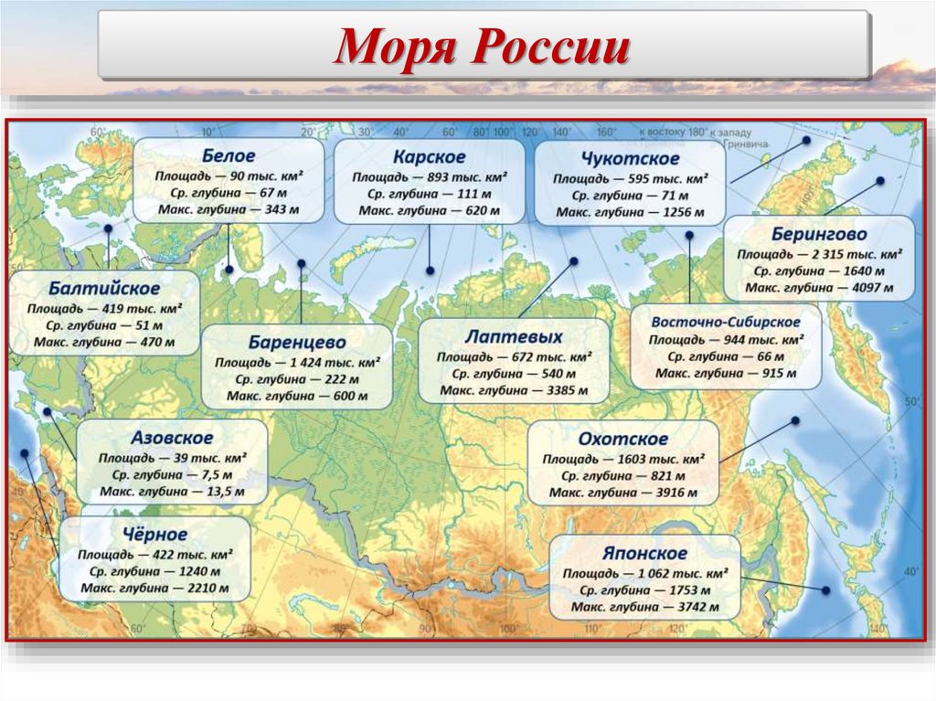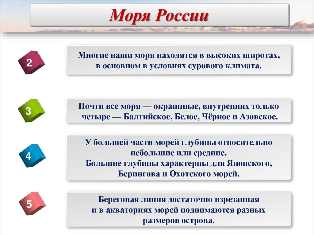 Моря РоссииРоссийская Федерация — огромная морская держава.