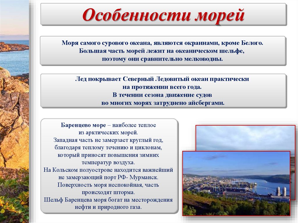 Особенности морейМоря самого сурового океана, являются окраинами, кроме Белого.