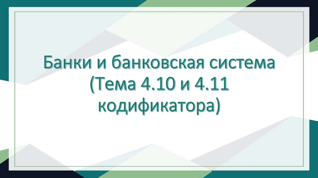 1. Банки и банковская система (Тема 4.10 и 4.11 кодификатора)