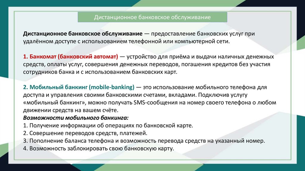 2. Мобильный банкинг (mobile-banking) — это использование мобильного телефона для