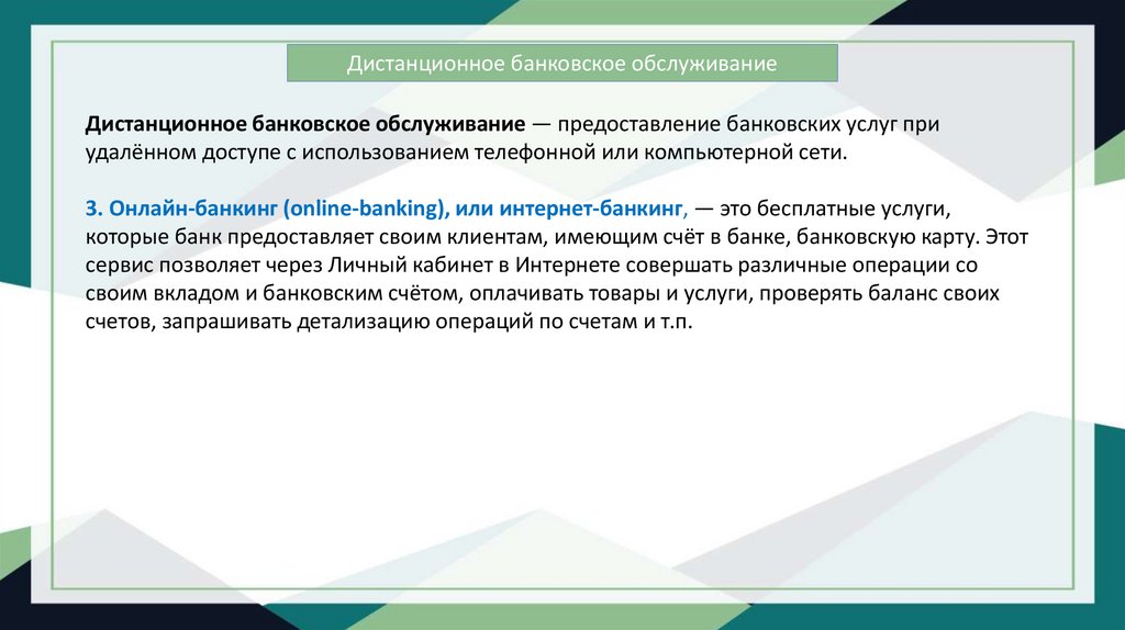3. Онлайн-банкинг (оnline-banking), или интернет-банкинг, — это бесплатные услуги,