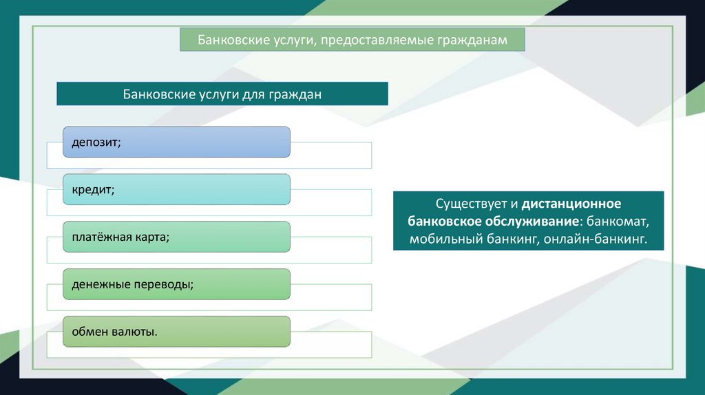 Банковские услуги, предоставляемые гражданамБанковские услуги для граждан