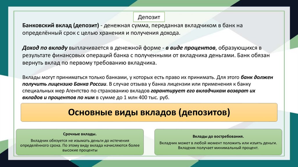 Основные виды вкладов (депозитов)