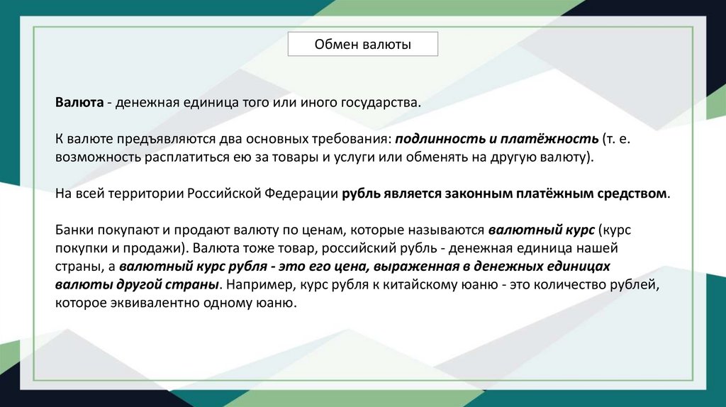 Обмен валютыВалюта - денежная единица того или иного государства.