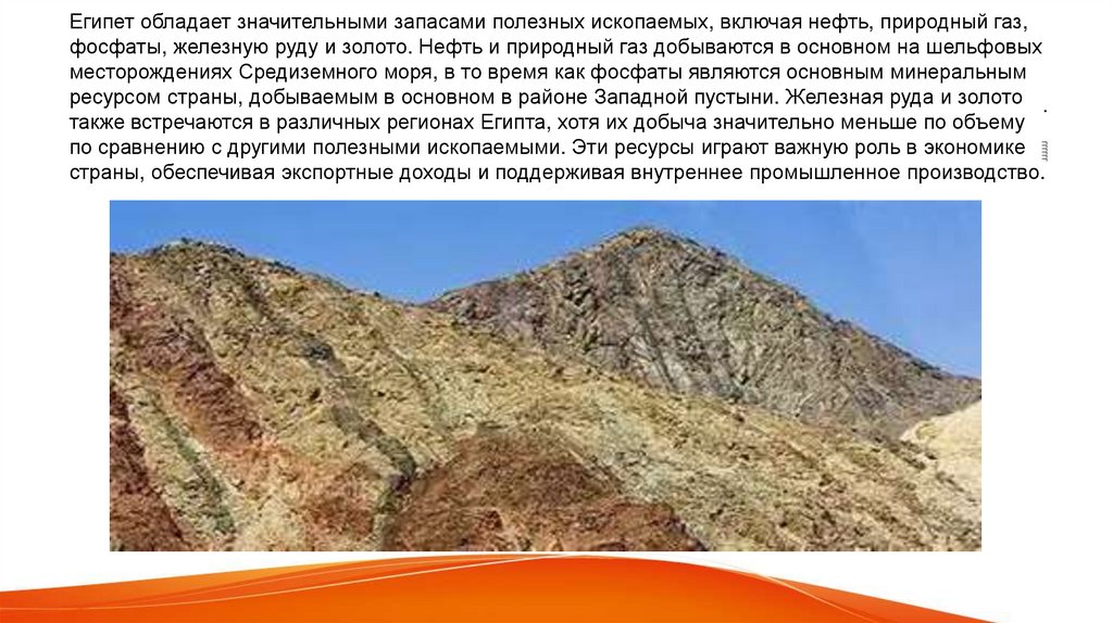 Египет обладает значительными запасами полезных ископаемых, включая нефть, природный газ,