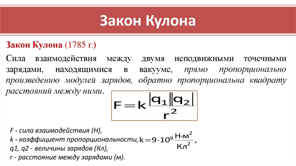 Закон КулонаЗакон Кулона (1785 г.)