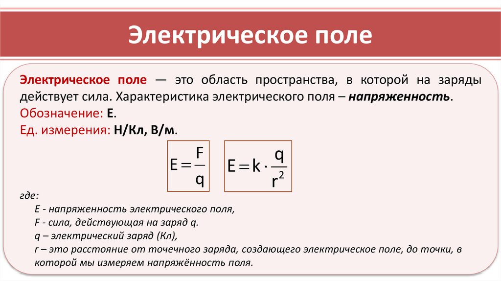 Электрическое полеЭлектрическое поле — это область пространства, в которой на заряды