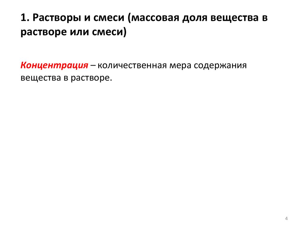 1. Растворы и смеси (массовая доля вещества врастворе или смеси)