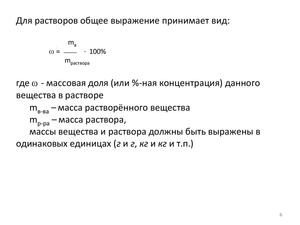 Для растворов общее выражение принимает вид:ω=