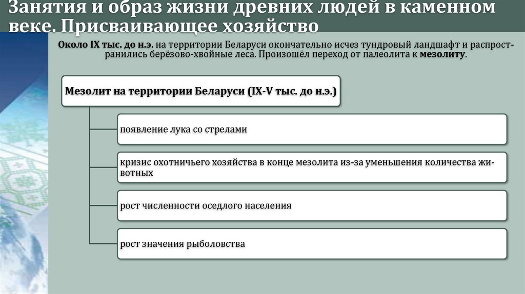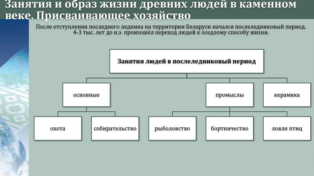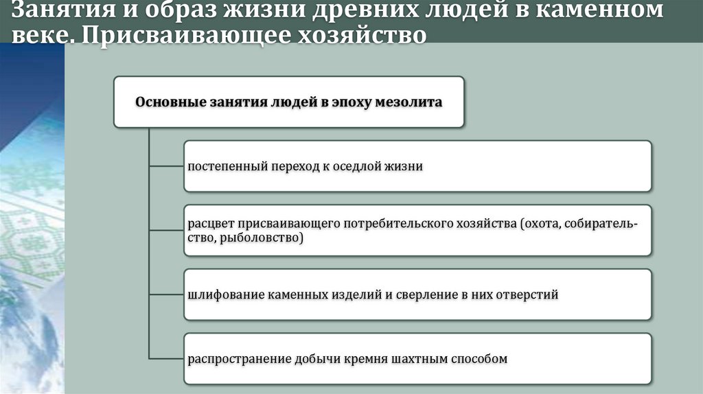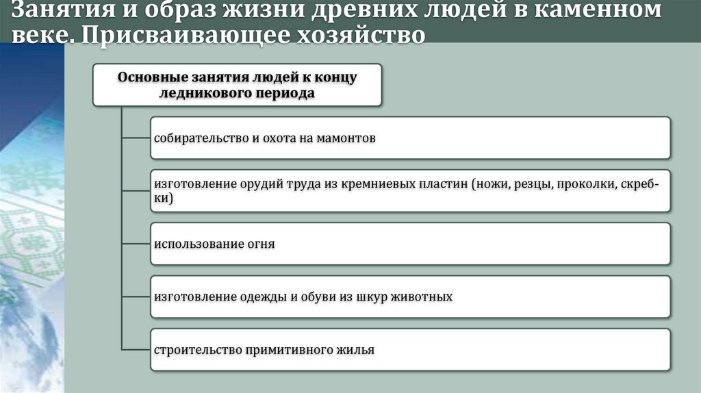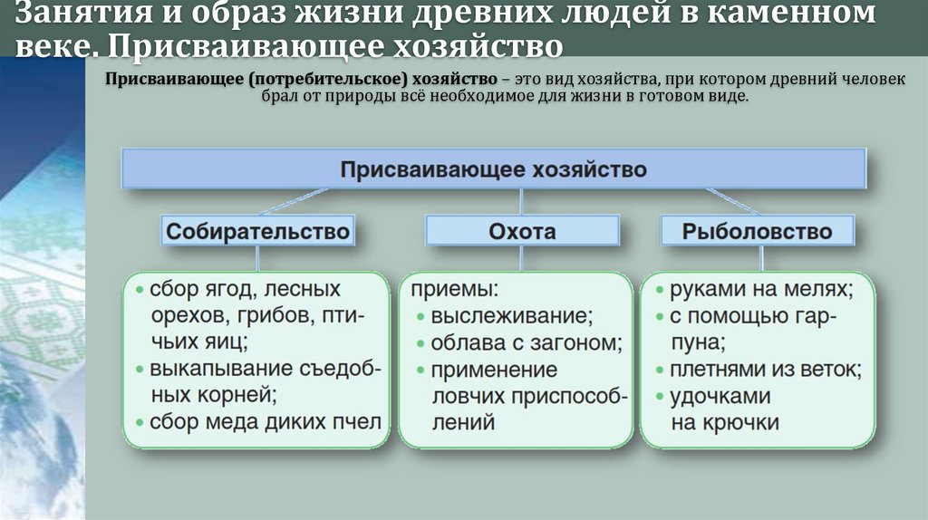 Занятия и образ жизни древних людей в каменномвеке. Присваивающее хозяйство
