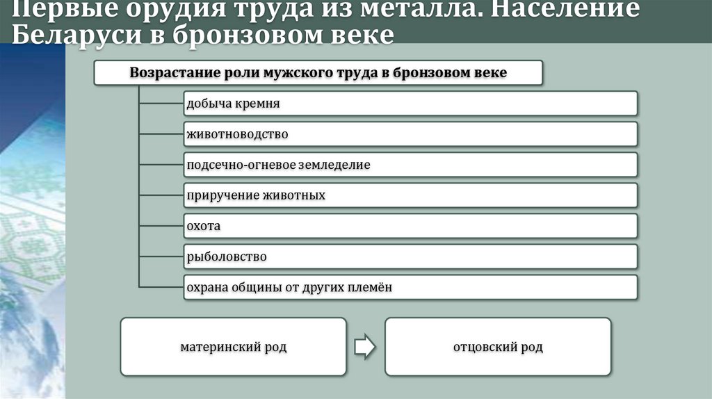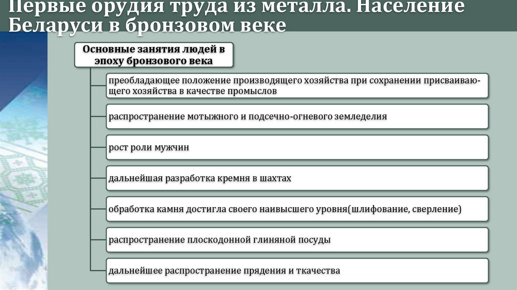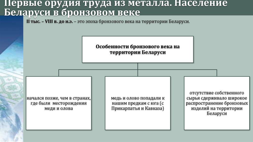 ➢ Первые орудия труда из металла. Население Беларуси в бронзовом веке.