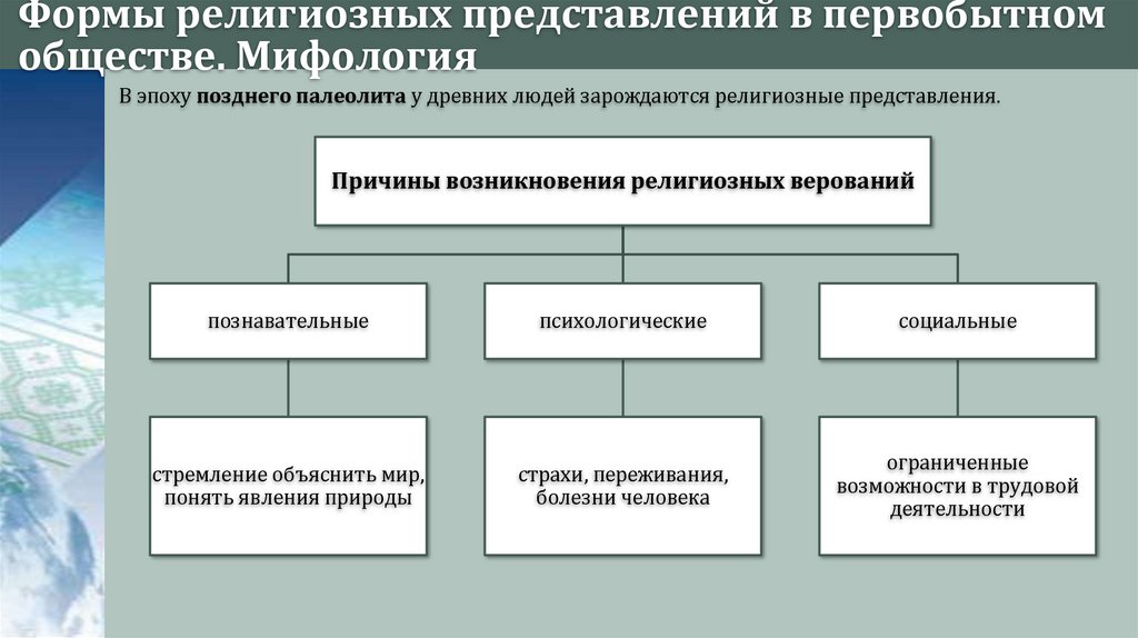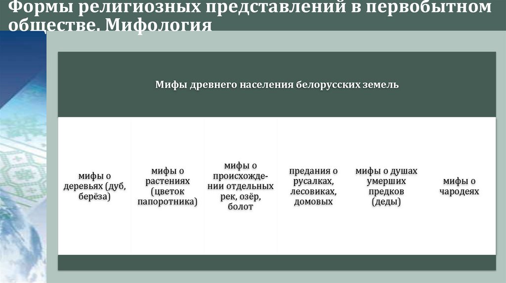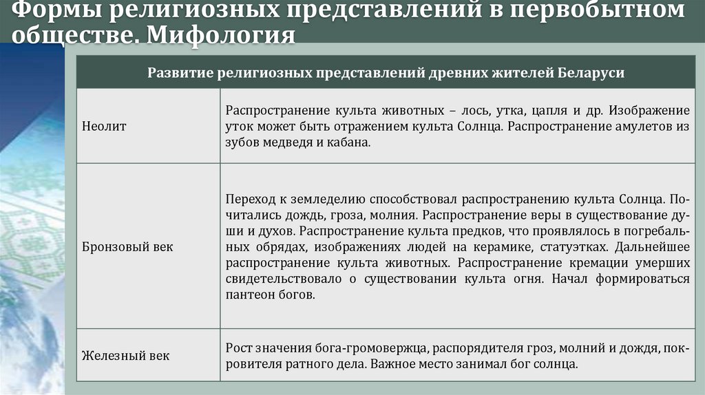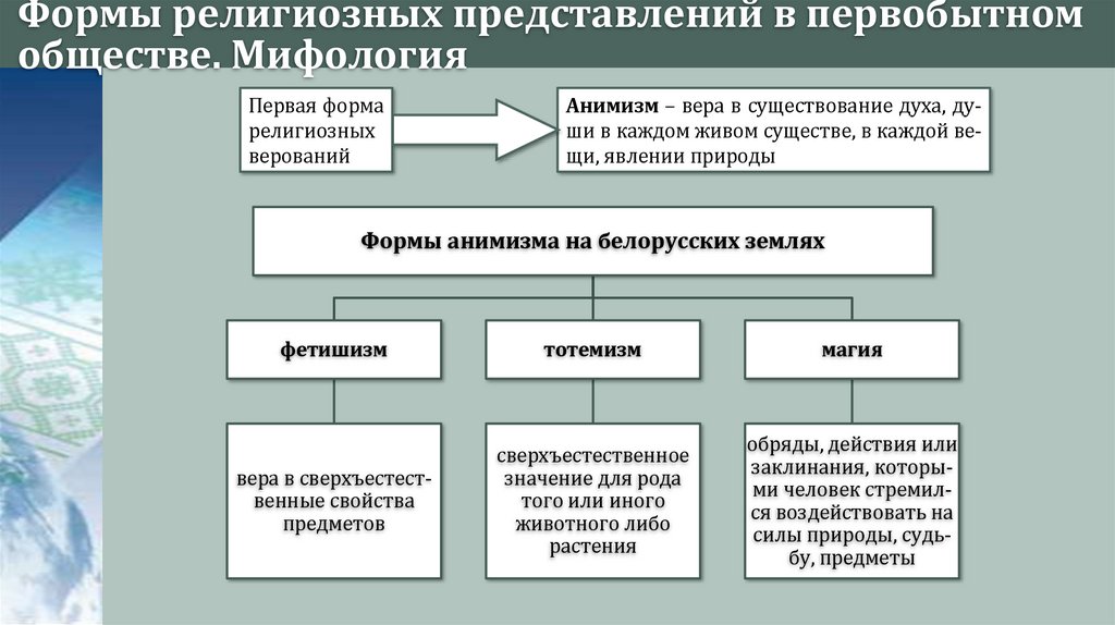 ➢ Формы религиозных представлений в первобытном обществе. Мифология.