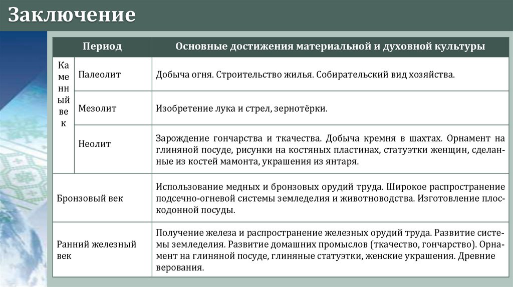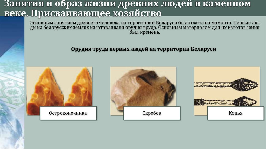 ➢ Занятия и образ жизни древних людей в каменном веке. Присваивающее хозяйство.