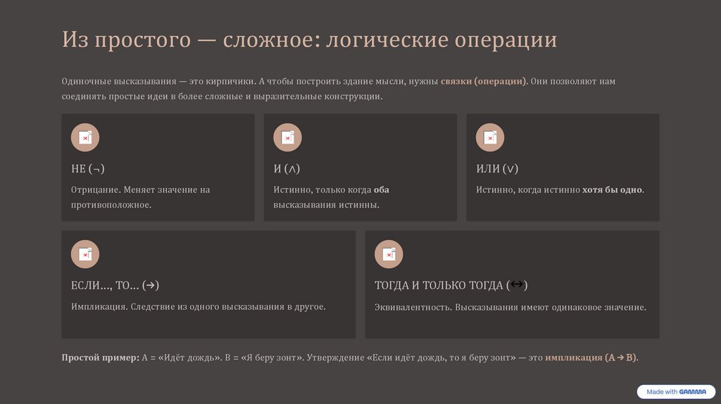 зонт». Это и есть логическое высказывание — утверждение, которое